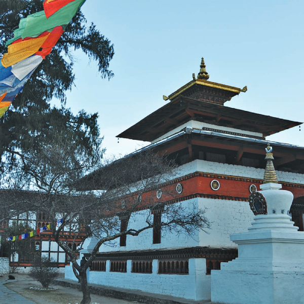 On this day after breakfast, we will go on a hike 12 kilometres north of Punakha to the magnificent Khamsum Yulley Namgyal Chorten, a symbol of Bhutanese architectural and artistic excellence. The hour-long trek through pine tree-lined paths offers panoramic views of the Punakha Valley. This 4-story temple, constructed over 9 years by Her Majesty the Queen Mother, Ashi Tshering Yangdon Wangchuck, follows sacred texts and aims to dispel negativity while fostering peace and harmony in a changing world. It stands proudly on a ridge above the Punakha Valley, providing commanding vistas of the Mo Chhu River and the towering peaks of Gasa and beyond.