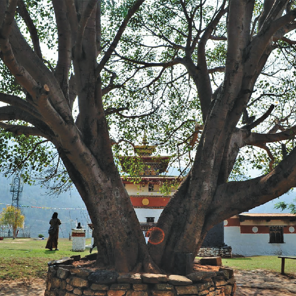 Continuing your journey, you'll embark on a short hike to Chimi Lhakhang, situated near Lobesa in Punakha. Perched on a round hillock and surrounded by a profusion of prayer flags, this monastery dates back to 1499 and is dedicated to Lama Drukpa Kinley, also known as 'the Divine Madman.' An accomplished master of the Mahamudra Buddhist Tradition, he gained fame as the 'Mad Saint' for his unorthodox teaching methods, which involved singing, humour, and eccentric behaviour, often with strong sexual overtones.