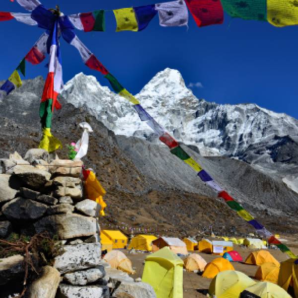 Here, amidst the rugged and awe-inspiring mountain landscape, we'll spend the night at Ama Dablam Base Camp, immersed in the natural beauty of the Himalayas and the sense of adventure that comes with being so close to this iconic peak. It's a memorable experience as we continue to explore the Everest region.