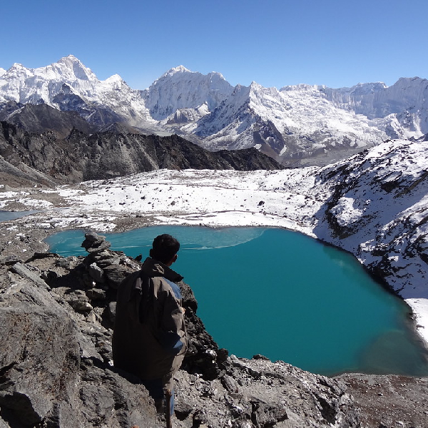 Today marks a major milestone in our journey as we take on the first of the three high passes—Renjo-La. The ascent is steep and demanding, but every step brings us closer to one of the most rewarding viewpoints in the Himalayas. Along the way, fluttering prayer flags mark the sacredness of the trail and offer a sense of spiritual energy. Upon reaching the top of Renjo-La, we’re greeted by a breathtaking panorama: the sparkling Gokyo Lakes below, the vast Ngozumpa Glacier stretching out before us, and towering peaks like Everest and Lhotse rising in the distance. After soaking in this unforgettable view, we begin our descent toward the serene and picturesque village of Gokyo, where our adventure continues.