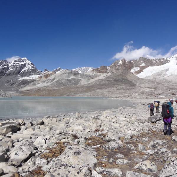 Venturing into one of the most remote regions of the Himalayas, our path takes us through the upper Hunku Basin from Seto Pokhari. The journey unfolds amidst a series of pristine lakes, starting with Hunku Pokhari, as we navigate the breathtaking landscape. Along the way, the trail closely follows the grand expanse of the Hunku Glacier, offering awe-inspiring views. As we progress, another picturesque lake graces our trail, enhancing the natural beauty that surrounds us in this rarely explored and secluded Himalayan realm. The pristine scenery and solitude characterize this segment of the trek, with encounters with fellow trekkers being infrequent, especially during the less crowded seasons.