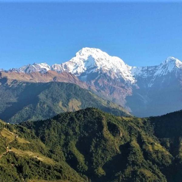 Panoramic views of Annapurna and Machhapuchhre, terraced farmlands, traditional villages, friendly locals, and peaceful forest trails are the key highlights.