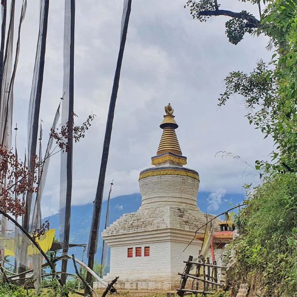 After your morning exploration, drive towards Trongsa. Your journey will take you across the Pele-la Pass, which stands at an elevation of 3,300 meters (10,830 feet). Along the way, you'll be treated to stunning mountain scenery and sweeping vistas. As you continue your journey, make a stop to visit Chendebji Chorten, an 18th-century stupa built by a Tibetan lama. The chorten was constructed to cover the remains of an evil spirit that was subdued at this location. It is built in the Nepalese style and features painted eyes at the four cardinal points. The landscape around Trongsa is truly spectacular, and you'll catch your first glimpse of the impressive Trongsa Dzong as you approach the town. This dzong is stretched along a ridge above a ravine and holds historical significance as a stronghold along Bhutan's traditional trade routes. The winding road leads you into the town, where you'll check in at your lodge.
