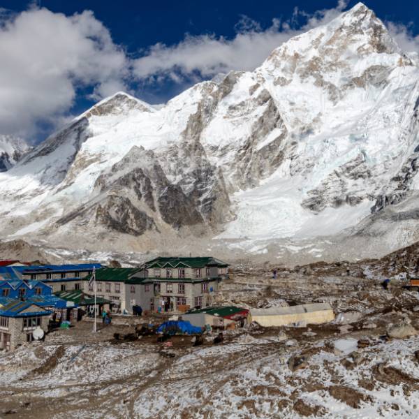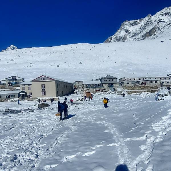 Today presents our greatest test as we climb through barren moraines to Gorak Shep (5,164m), the final outpost before Everest's legendary base camp. The thin air bites as we navigate boulder-strewn trails, each step bringing us closer to the roof of the world. The thin air makes each step demanding, but the unfolding panorama of Pumori's ridges and Nuptse's towering face keeps spirits high.