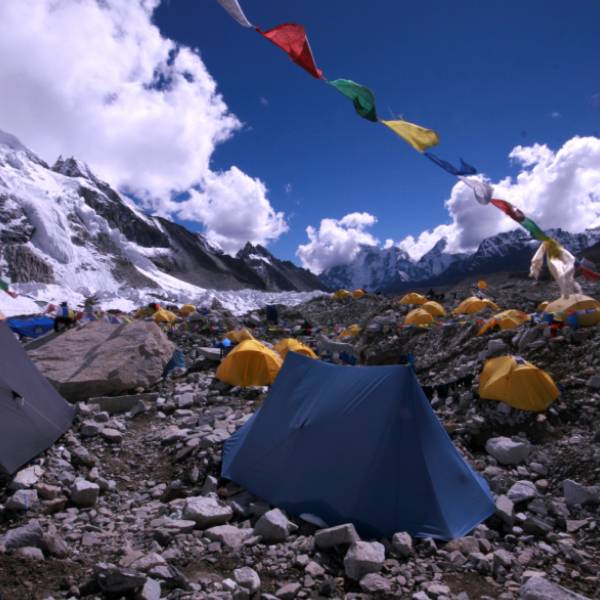 After a quick refreshment at Gorak Shep, we push forward across the Khumbu Glacier's surreal ice formations. Reaching Everest Base Camp (5,364m) delivers an unforgettable rush of achievement, standing where legends begin their summit bids, surrounded by the Himalayas' mightiest peaks. The vibrant prayer flags snap in the wind as we take in the Khumbu Icefall's jagged beauty and the imposing southwest face of Everest. As daylight fades, we return to Gorak Shep, our hearts full of memories that will last a lifetime.