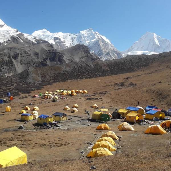 After a comfortable 3 to 4-hour journey, we finally reached the distinguished base camp of Mt. Himlung. Here, our experienced Sherpa team efficiently arranges the expedition team's tent, ensuring that we have a cozy and secure haven to rest and prepare for the awe-inspiring journey that lies ahead. Let the excitement of this momentous undertaking fill our hearts as we embrace the thrill of the Himalayan expedition.