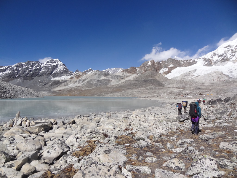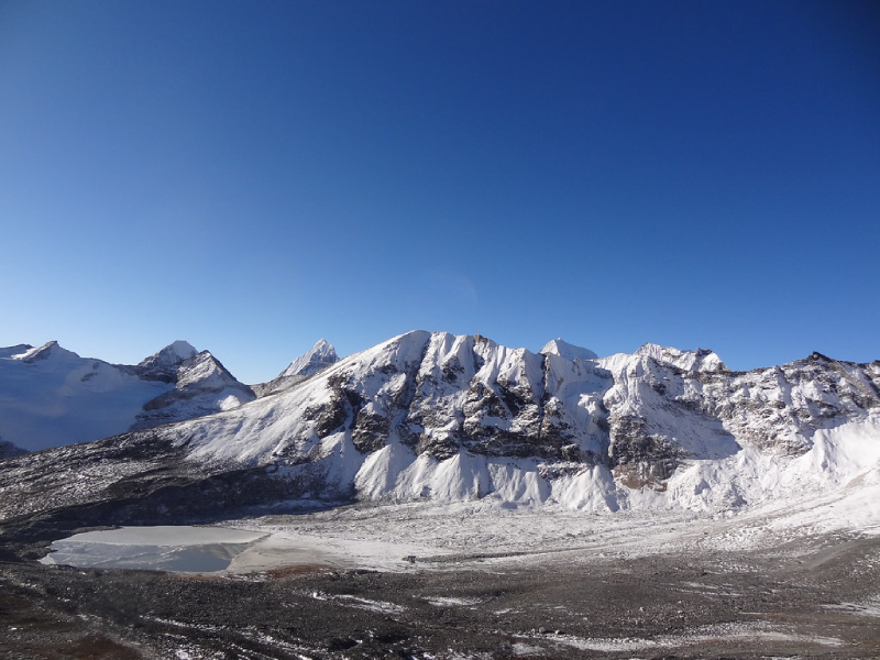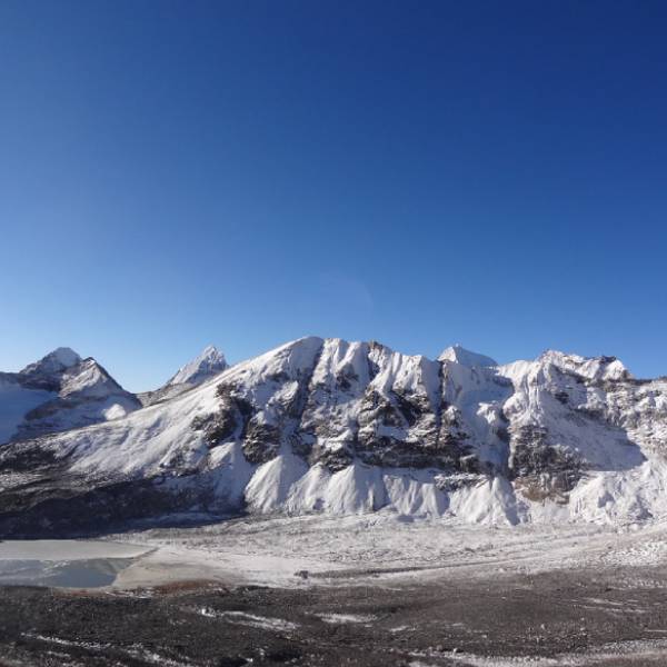 Venturing into one of the most remote regions of the Himalayas, our path takes us through the upper Hunku Basin from Seto Pokhari. The journey unfolds amidst a series of pristine lakes, starting with Hunku Pokhari, as we navigate the breathtaking landscape. Along the way, the trail closely follows the grand expanse of the Hunku Glacier, offering awe-inspiring views. As we progress, another picturesque lake graces our trail, enhancing the natural beauty that surrounds us in this rarely explored and secluded Himalayan realm. The pristine scenery and solitude characterize this segment of the trek, with encounters with fellow trekkers being infrequent, especially during the less crowded seasons.