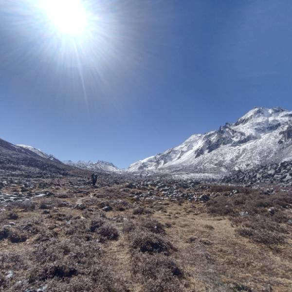 Today's journey unfolds through alpine grasslands, where yaks roam freely in abundance. Tracing the river amid rhododendron shrubs, the path eventually veers right, ascending the hillside. Ascend to a high, open valley adorned with meadows, reaching the Tshomo La Pass at an elevation of 4915m. The panoramic views of Mount Jomolhari and the Tibetan borders from this vantage point are truly breathtaking. Continue your hike across the barren plateau, intersecting several yak trails, until you arrive at Narithang (4900m), your camp for the night. The trek showcases the pristine beauty of Bhutan's wilderness, offering diverse landscapes and majestic mountain vistas throughout the journey.