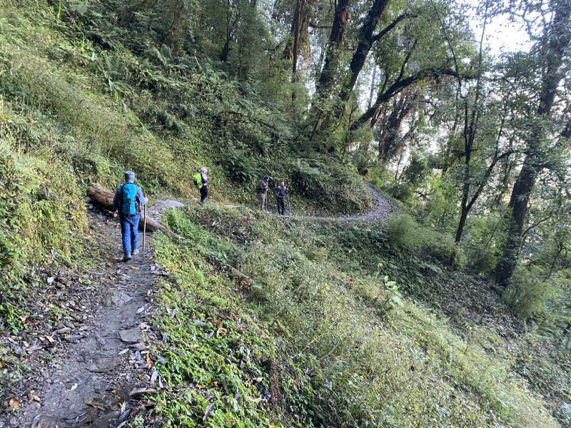 We will start our trek from Kande and hike through rhododendron forests and charming villages. The distance from Kande to Forest Camp is approximately 10. The trekking time to reach Forest Camp from Kande can vary depending on your pace, fitness level, and weather conditions. On average, it takes around 4-6 hours to complete this section of the trek. The path is well-marked and moderately steep in some sections. As you trek further, you'll pass through beautiful landscapes, terraced fields, and small streams. The trail gradually gains elevation, providing scenic views of the Annapurna and Machhapuchhre.
